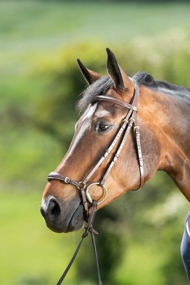 Têtière anatomique, frontal et muserolle rembourrés et doublés de cuir souple.