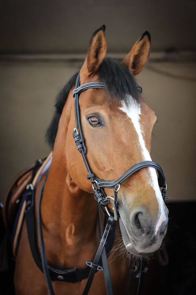 Produit issu du savoir faire JUMP'IN : le design a été pensé pour dégager le cheval de tous les potentiels points de pression et de friction pendant le travail. Têtière anatomique, attache de muserolle décalée, pas de superposition de montants et doublure cuir micro-perforé très confortable.
