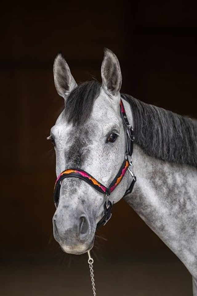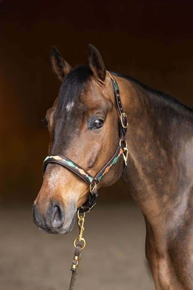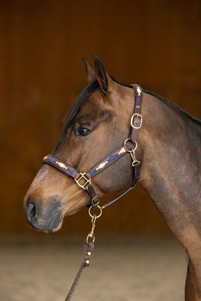 Têtière à double réglage, rembourrée et doublée de cuir souple. Muserolle rembourrée et doublée de cuir souple Design de type "polo" sur la muserolle, les côtés et la têtière.