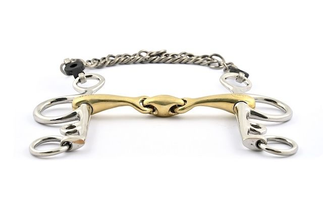 Double brisure : plus décontractant qu’un mors à simple brisure, son action est plus précise et plus forte sur les barres. Il s’adapte mieux à la morphologie du palais du cheval donc plus confortable.