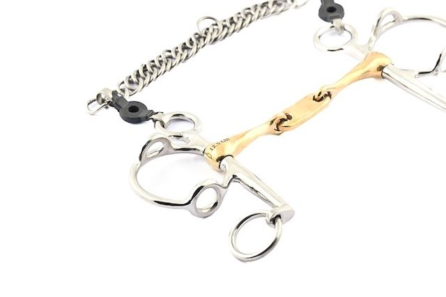 Double brisure : plus décontractant qu’un mors à simple brisure, son action est plus précise et plus forte sur les barres. Il s’adapte mieux à la morphologie du palais du cheval donc plus confortable.