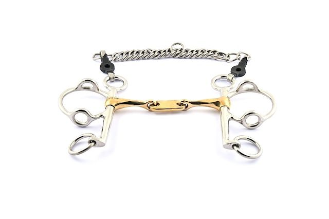 Pelham : effet de levier assez fort pour solliciter un « placer » d’autorité et une prise importante sur la mise en avant. Il faut donc l’utiliser sur des chevaux avec de l’impulsion. Effet plus ou moins fort selon la longueur des branches et le réglage de la gourmette.