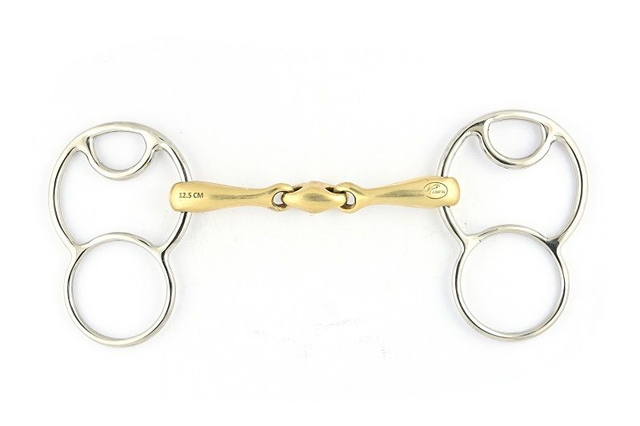 Double brisure : plus décontractant qu’un mors à simple brisure, son action est plus précise et plus forte sur les barres. Il s’adapte mieux à la morphologie du palais du cheval donc plus confortable.
