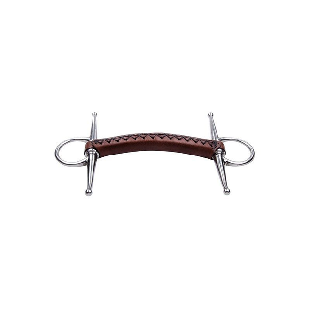 Mors en nylon renforcé, recouvert par un cuir naturel cousu. Le mors devient plus confortable lorsque le cheval salive. Idéal pour les chevaux à bouche sensible.
