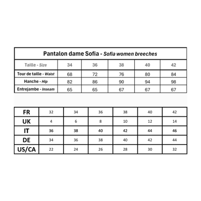 Coupe taille haute pour ce pantalon d'équitation Sofia en tissu SOFT TEX dernier né de la gamme Jump'In. Bien emboîtant, il assure un bon maintient avec sa ceinture large et un grand confort pour toutes les cavalières qu'elles soient sur les terrains de concours comme aux écuries. Il est confectionné dans cette matière très douce, confortable et déperlante. Il a été pensé avec un minimum de coutures pour éviter les frottements et irritations pour les peaux les plus sensibles. L'intérieur des genoux est doté d'un fin grip qui améliore la fixité du cavalier sans le bloquer.