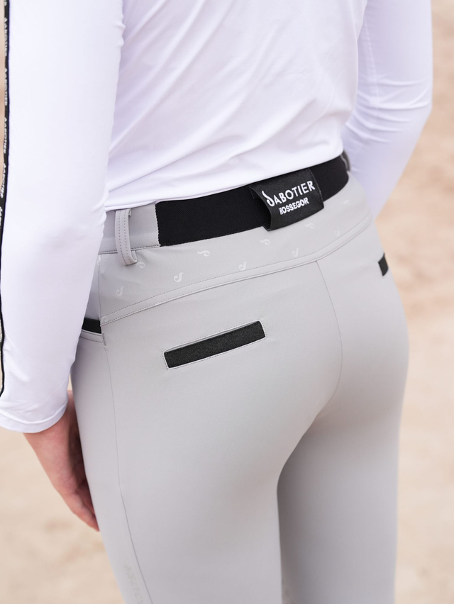 Coupe moderne et taille mi-haute pour dessiner parfaitemnt la silouhette. Ceinture élastique dans le dos. Application de grips à l’intérieur des genoux. Fermeture avec une agrafe et un bouton.