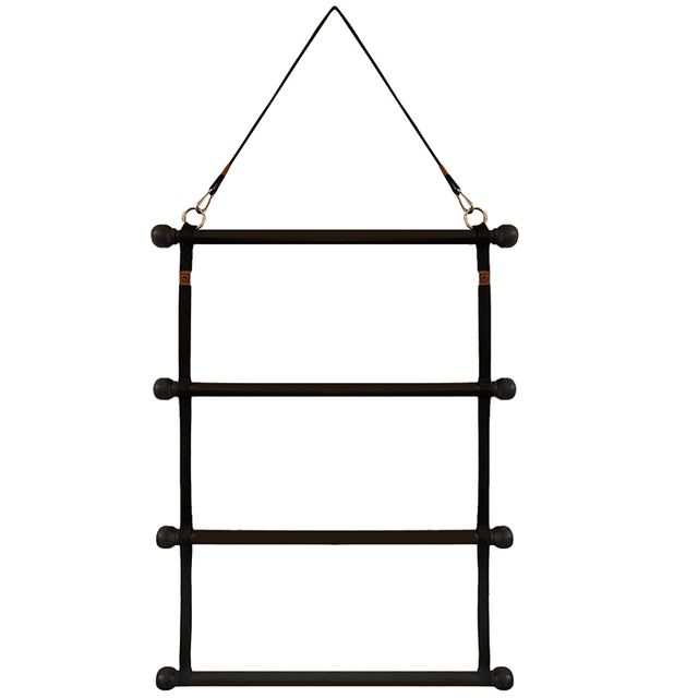 Le porte-tapis PADDOCK Sports est composé de 4 solides barres en bois reliées par des sangles en nylon résistant. Il permet, sur quatre niveaux différents, de suspendre vos tapis de selle, couvre-reins, chemises ou couvertures… Il s'accroche un peu partout grâce à sa lanière amovible. Très solide, il est fabriqué dans un bois très chic et un nylon particulièrement résistant. C'est un accessoire ultra pratique aux écuries comme en concours !