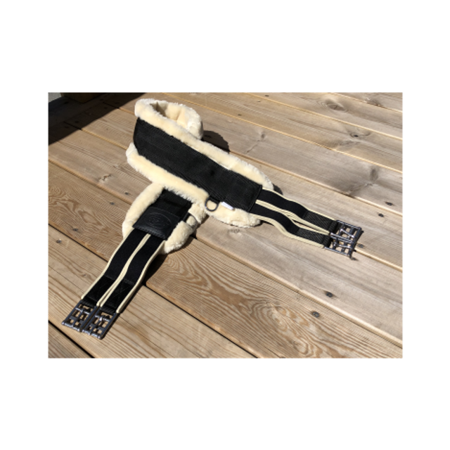 La sangle Soft One est en mouton synthétique très doux et confortable, doublée de nylon. Elle est dotée d'un anneau de chaque côté et d'un anneau central pour fixer les enrênements. Les boucles inox à rouleau facilitent le sanglage et l'élastique de chaque côté est triplé pour plus de solidité.