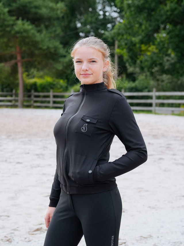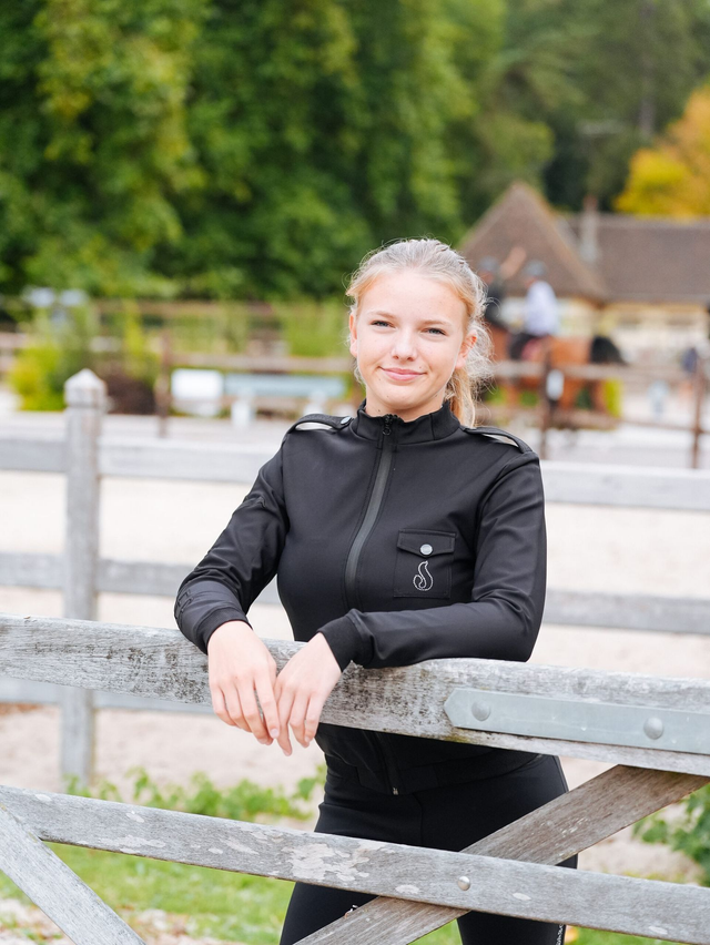 Finitions : broderie « Sabotier » le longe de la manche, logo en strass sur la poitrine.
